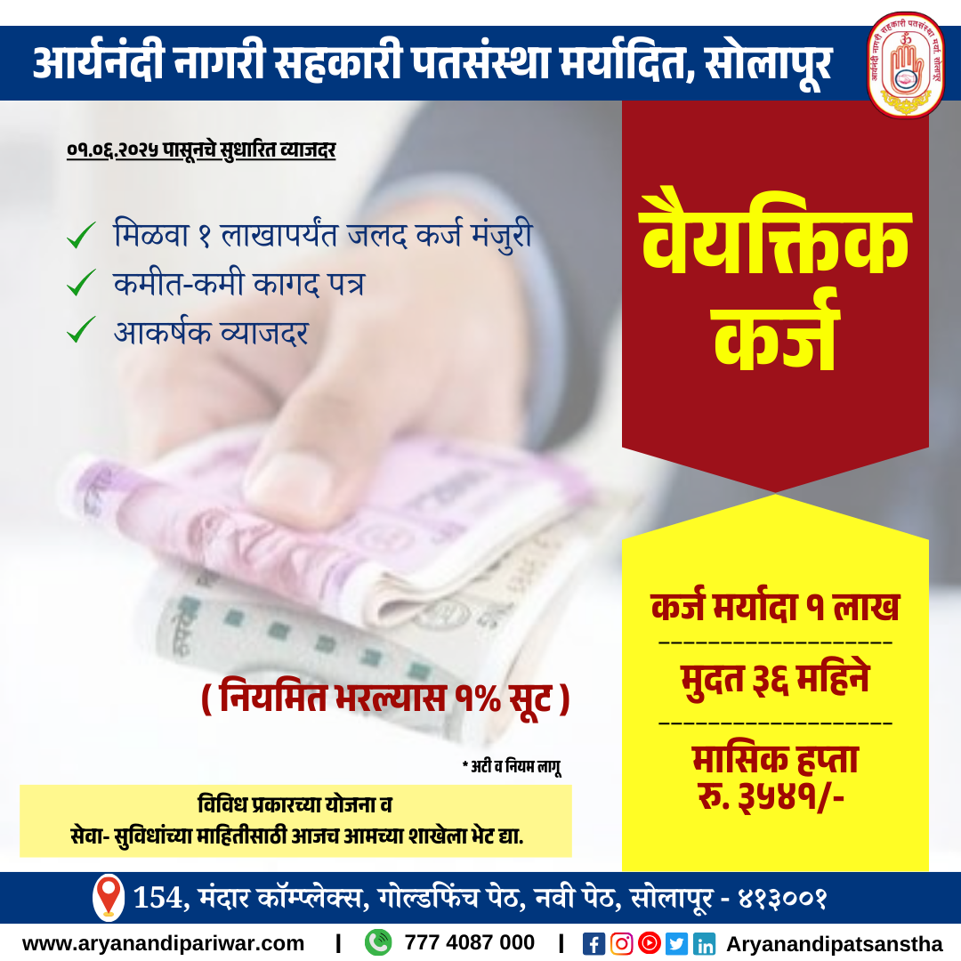 - Welcome To Aryanandi Nagri Sahkari Patsanstha Maryadit, solapur