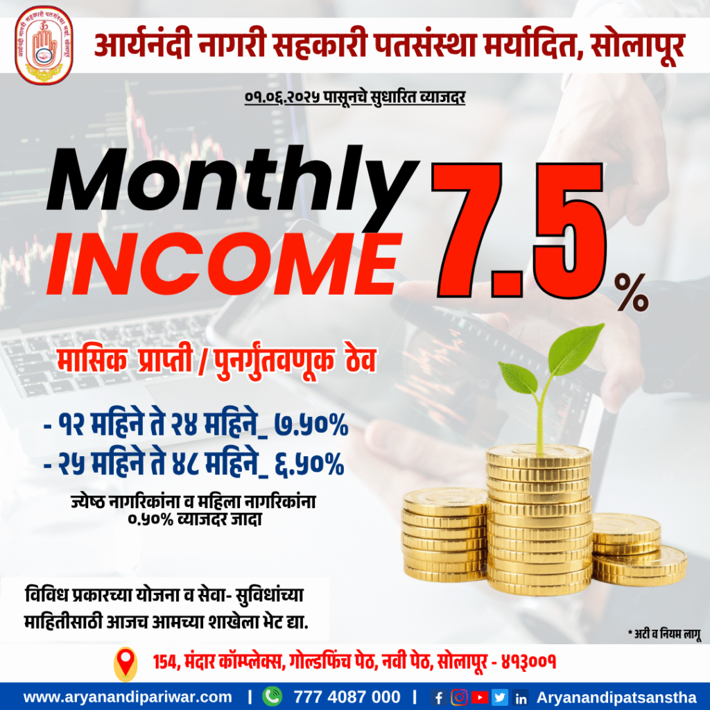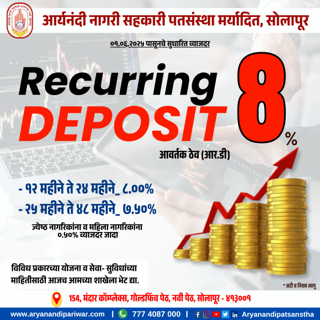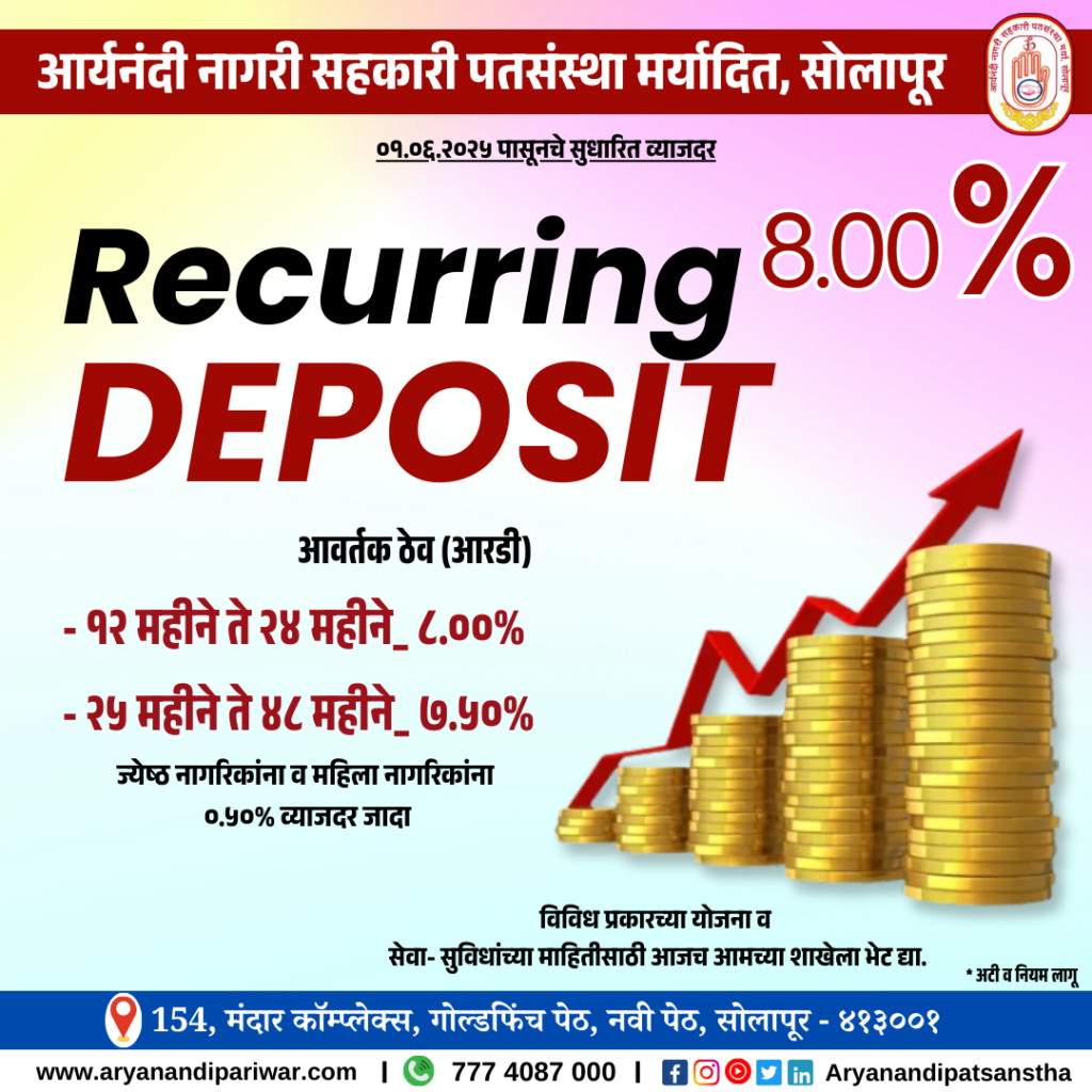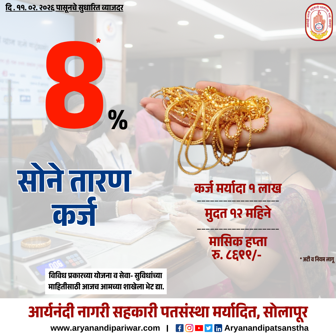 Aryanandi Patsanstha Best loan services in solapur & Mini financial services in solapur. fixed deposit, mortgage loan, personal loan, gold loan, vehicle loan, car loan, saving account, dam duppat deposit, NEFT, RTGS, SMS alerts, check balance, mini statement, bill payment ...